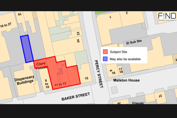 The freehold is shaded in red for identification purposes only. The site shaded blue may also be available subject to a purchasers requirement.