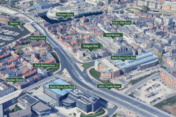 The property is situated in the Old Town area of Hull, prominently positioned within yards of the Market Place junction with the A63 Castle Street, close to Hull Minster and the Old Town drinking circuit. Immediately south of the A63 is the regenerated Fruit Market area with a recently formed pedestrian route to Market Place.
