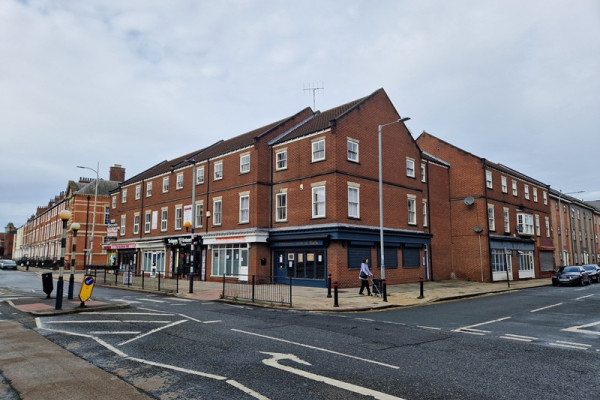 Unit 6 Albion House is an end-terraced commercial unit forming part of a larger mixed-use development. The sales area features a timber-frame shopfront with side windows facing Charles Street, secured externally by roller shutters. To the rear, there is a kitchen/preparation area equipped with fitted extraction, as well as separate access leading to a communal service yard. The unit benefits from one allocated car parking space within this yard.